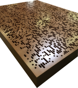 The Expo Panel System consists of panels that are 3/4“ thick that are perforated following an optimal binary sequence that determines where holes are and where they are not.  This scientifically proven approach eliminates the possibility of absorbing excessive high frequencies while preventing lobing effects that are common among many uniformly perforated surfaces. At the same time, the system targets mid and low frequency absorption to solve the problem of reverberation time, flutter-echo, ‘boominess’ and loudness. The Expo Panel System is able to offer an excellent balance of absorption and reflection that is completely unique. The acoustically optimized perforation pattern is an ideal solution for anyone looking to optimize the acoustical performance in performance, rehearsal and communication environments.