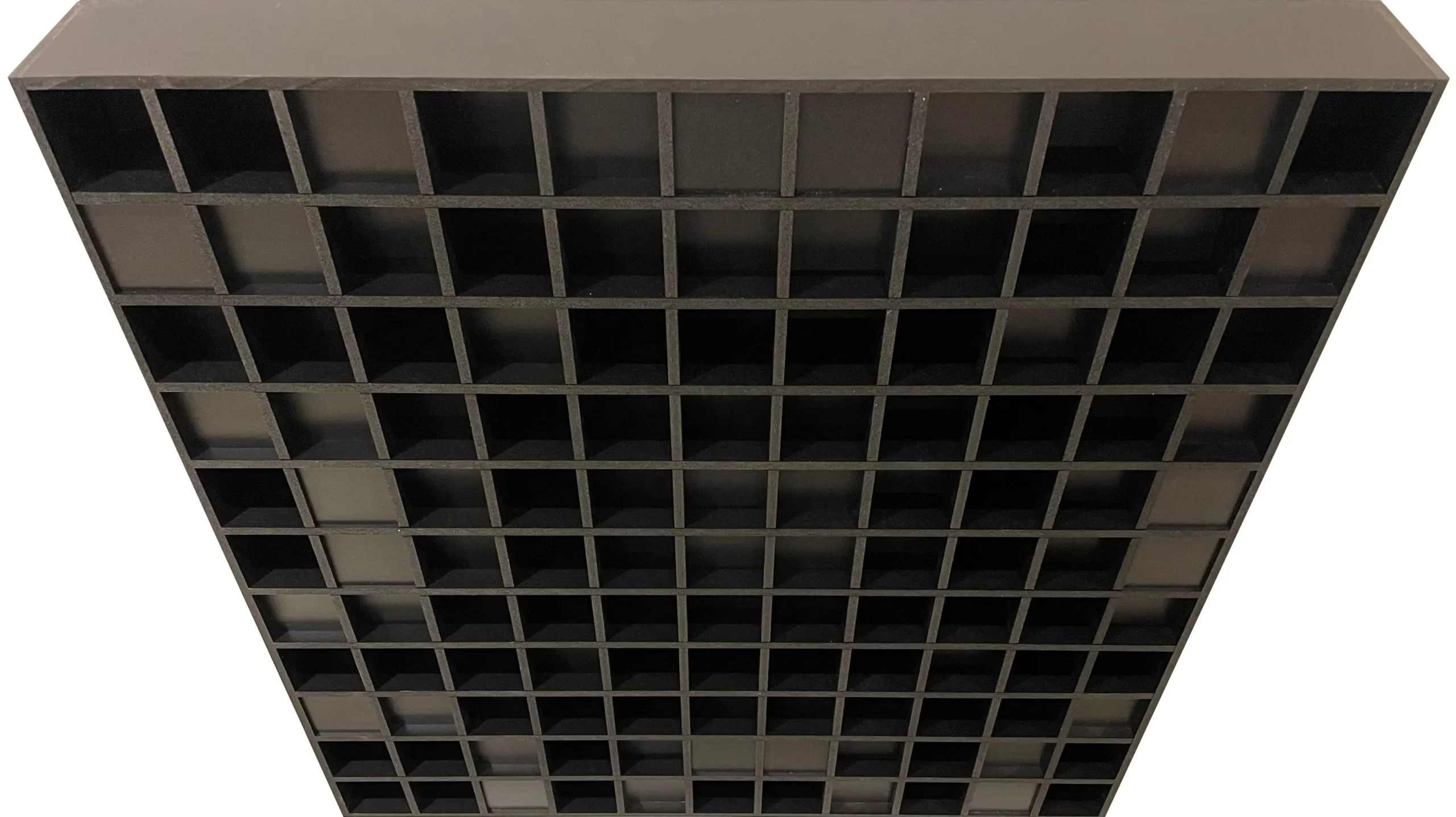 Omniffusor® U113 (Utility) is a utility-grade, highly durable, lighter-weight model option in white or black. White can be used for high ceilings, such as band and choral rooms, while black can be used anywhere units are intended to be heard more than seen, such as black box theaters and behind stretch fabric installations. The U model is intended to fill both the price and performance gap between less expensive molded diffuser options and the more expensive wood options, providing a unique solution that matches the higher performance (more diffusion, less absorption) of the more aesthetically pleasing wood models at a lower price point due to the utility nature of the finish. U models use a proprietary fire-rated core with no required edge banding or finishing for cost savings. U models are available for all Omniffusor designs.