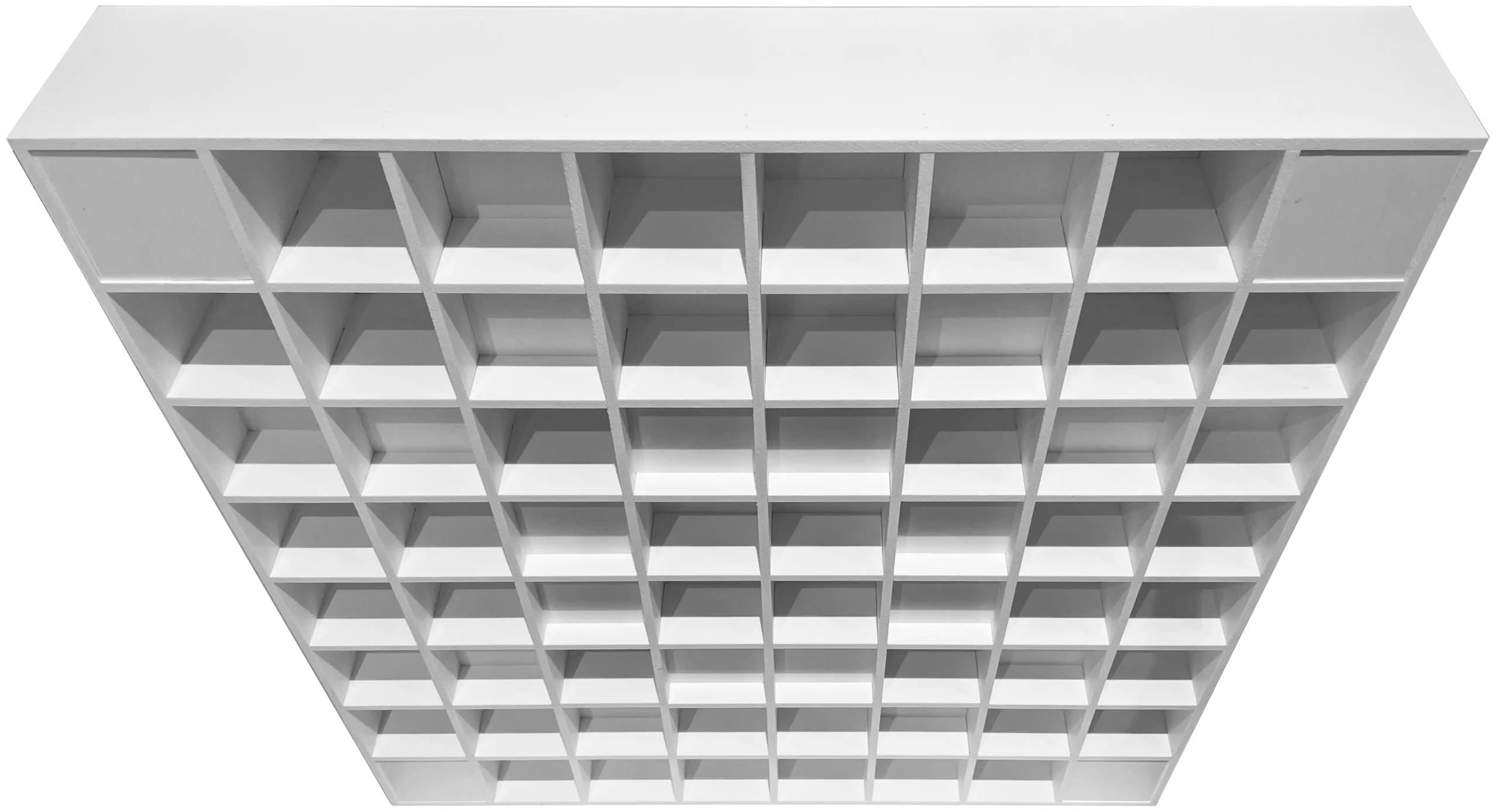 Omniffusor® U58 (Utility) is a utility-grade, highly durable, lighter-weight model option in white or black. White can be used for high ceilings, such as band and choral rooms, while black can be used anywhere units are intended to be heard more than seen, such as black box theaters and behind stretch fabric installations. The U model is intended to fill both the price and performance gap between less expensive molded diffuser options and the more expensive wood options, providing a unique solution that matches the higher performance (more diffusion, less absorption) of the more aesthetically pleasing wood models at a lower price point due to the utility nature of the finish. U models use a proprietary fire-rated core with no required edge banding or finishing for cost savings. U models are available for all Omniffusor designs.