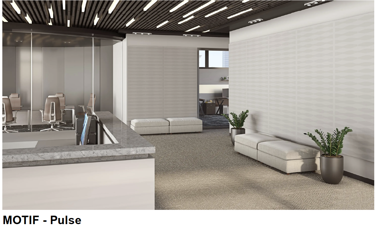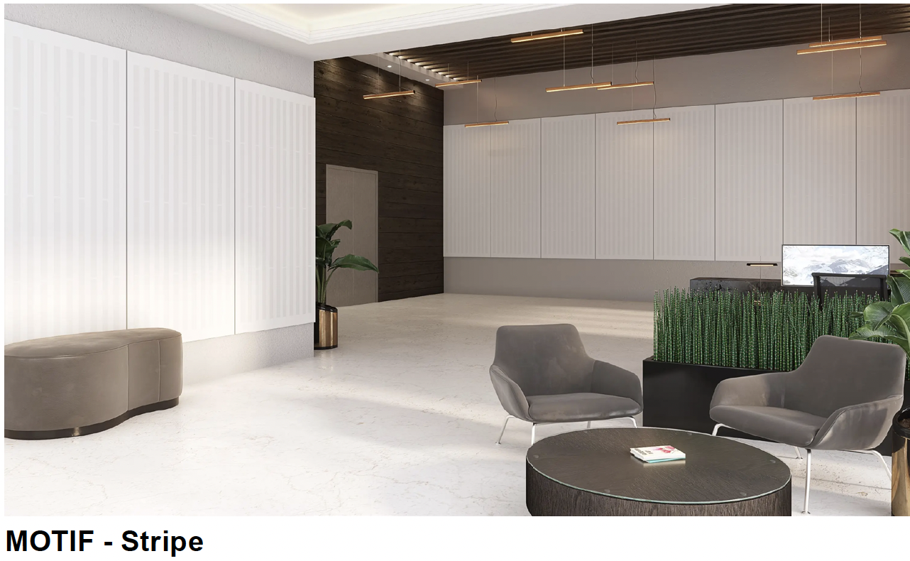 The Perfecto® Micro MOTIF Panel combines durable, architectural-grade wall or ceiling panels with standard or custom micro-perforated and non-perforated fields and borders, providing an elegant design motif with sound-absorbing qualities in any space. The MOTIF can be single panel based or extend over multiple panels in standard or custom designs. The panels utilize hundreds of thousands of sub-millimeter laser micro-perforations and are available in a high recycled content, ULEF, Class A fire-rated and FSC®-certified MDF core with an optional black fleece backer, the Perfecto® Micro MOTIF Panel can achieve an average starting  NRC=0.80 while maintaining the ambiance of the space with reflections at the highest frequencies. Contact your RPG Sales Representative to discuss your unique project and let your imagination run wild!
